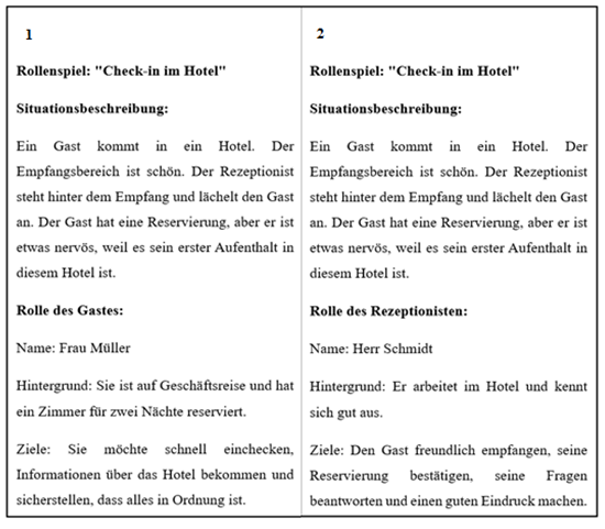 Каждый участник получает одну карточку, на которой содержится описание ситуации, роль, имя, коммуникативная задача. Студенты не видят карточки друг друга, что добавляет элемент непредсказуемости и соответствует реальным условиям общения.